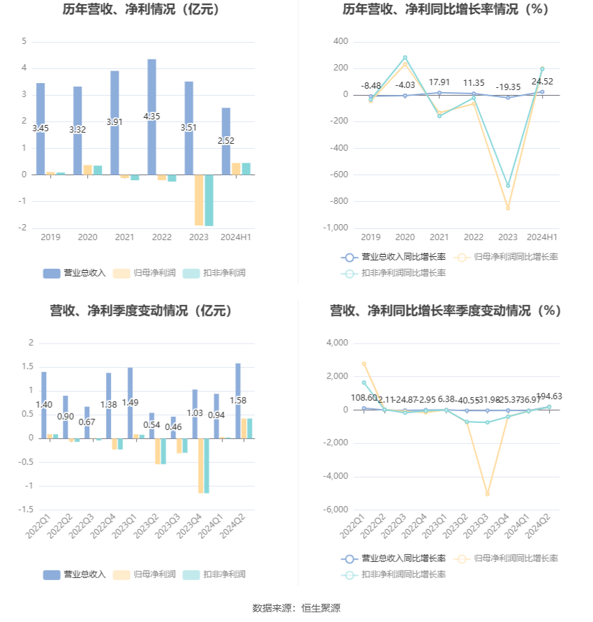 根据半年报,公司第二季度实现营业总收入1.58亿元,同比增长194.63%,环比增长68.97%;归母净利润4225.51万元,同比增长178.40%,环比增长1358.41%;扣非净利润4207.72万元,同比增长177.47%,环比增长1613.42%。