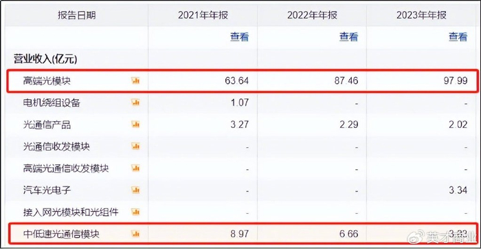 而光芯片的成本占比分布在低端光模块(低速、短距)、中端光模块(10G-100G)、高端光模块(400G/800G及以上)上的数据大约分别为20%、50%、70%。光芯片的性能直接决定光模块的传输速率,因此也是光通信产业链的核心元件之一。而根据下面的调研来看,中际旭创的光芯片除了美国厂商还有来自其他国家的;再根据战略发展来看,中际旭创目前逐渐减少中低速光模块,主要聚焦高端光模块,由此可以判断公司对高端光芯片的需求是刚性的。