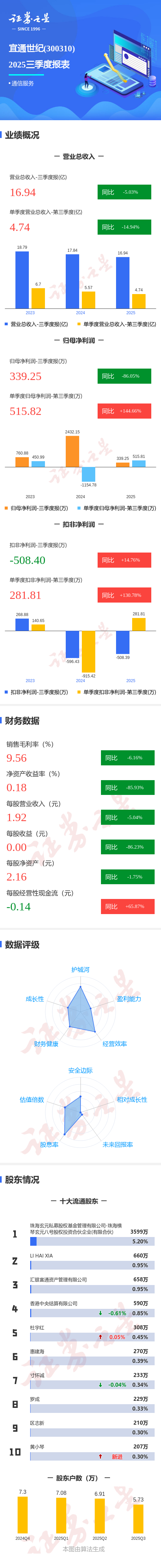 图解宜通世纪三季报:第三季度单季净利润同比增长144.67%