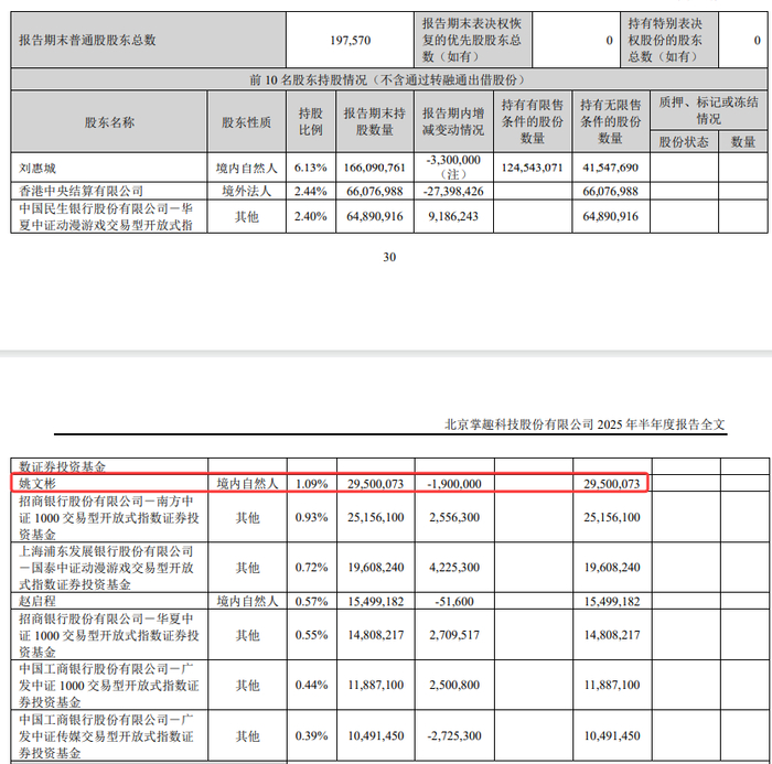 而今年8月掌趣科技发布2025年中报时,股权结构为: