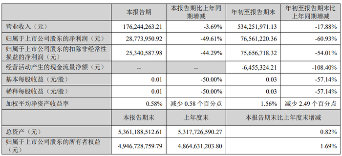 其中,2025年第三季度公司营收为1.76亿元,同比下降3.69%;归母净利润为2877.4万元,同比下降49.61%。