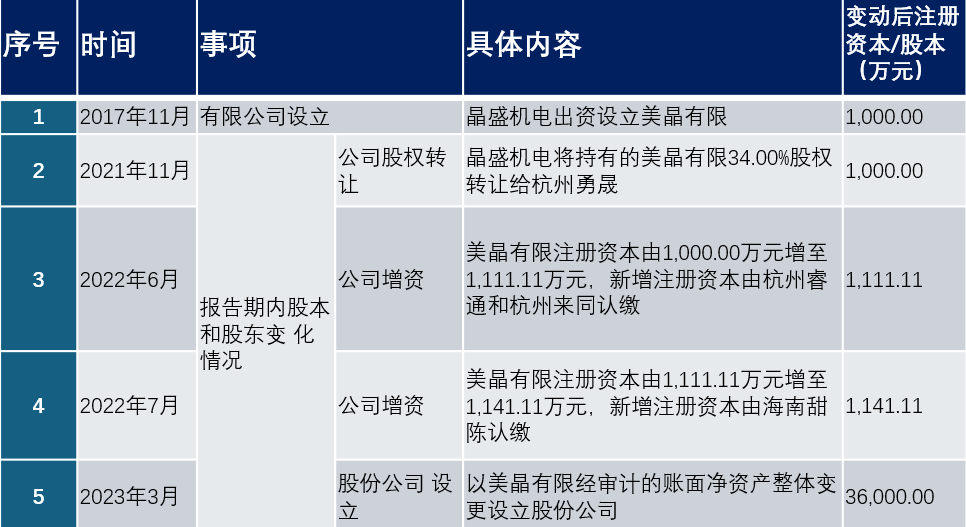 下面这张表是美盛新材自成立至招股书披露日的股本变化情况: