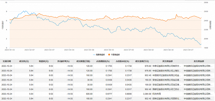 10月24日大宗交易成交1380万股,成交额7783.2万元,占当日总成交额的50.81%,成交价5.64元,较市场收盘价折价14.93%。