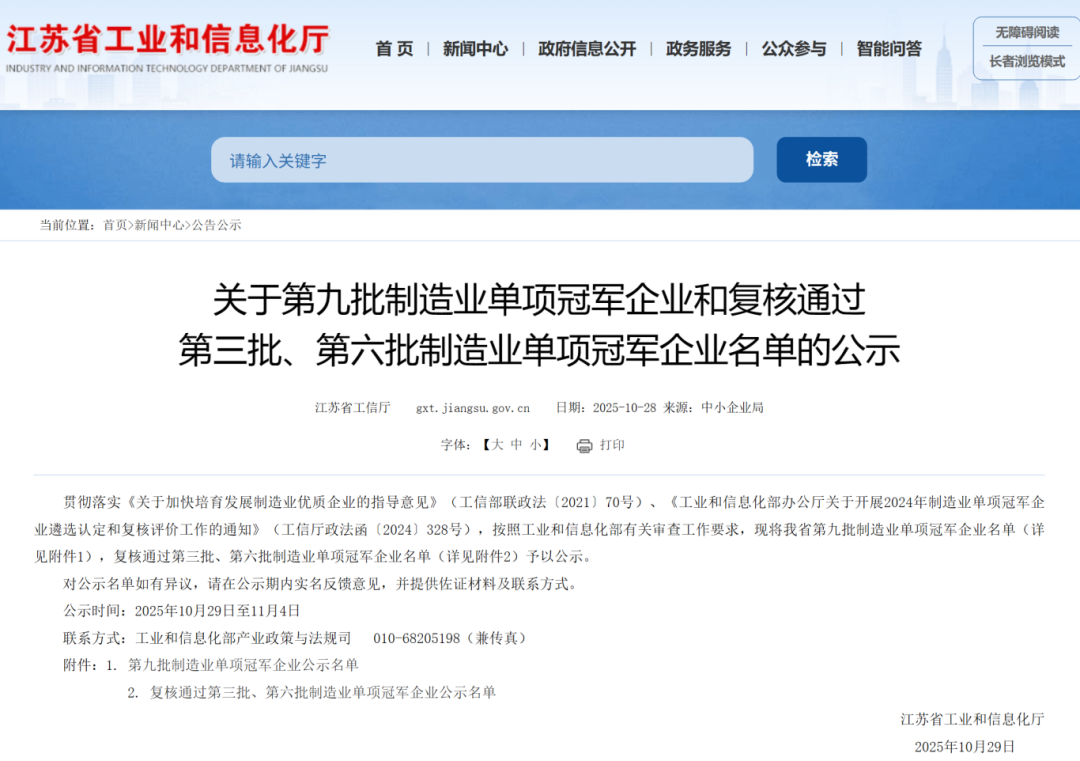 喜报 | 苏大维格入围国家制造业单项冠军!
