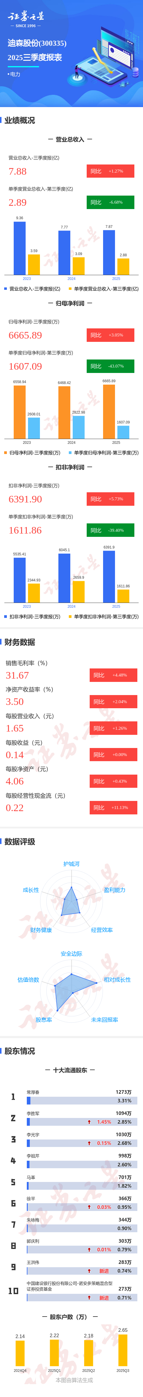 图解迪森股份三季报:第三季度单季净利润同比下降43.07%