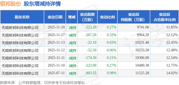 截至2025年12月3日收盘,银邦股份(300337)报收于11.41元,上涨4.97%,换手率15.06%,成交量107.14万手,成交额12.17亿元。