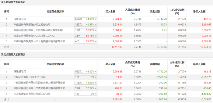 5月31日20CM涨停,成交额17.51亿元,换手率25.93%,盘后龙虎榜数据显示,深股通专用席位买入5204.38万元并卖出4742.20万元。