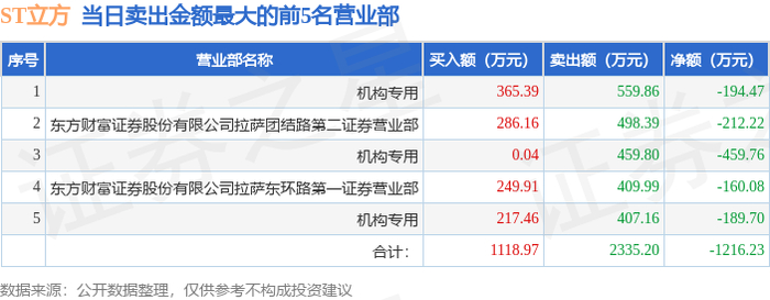 11月3日ST立方(300344)龙虎榜数据:机构净卖出843.93万元