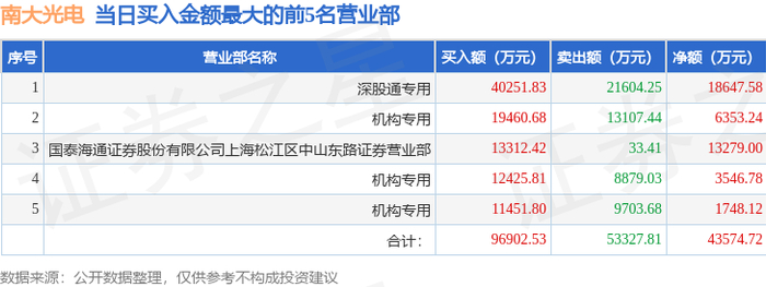 从龙虎榜公布的当日买卖数据来看,机构合计净买入1.16亿元,北向资金合计净买入1.86亿元。上海中山东路等知名游资榜上有名。(知名游资上海中山东路一般指国泰海通证券股份有限公司上海松江区中山东路证券营业部席位,根据市场资料整理,仅供参考)