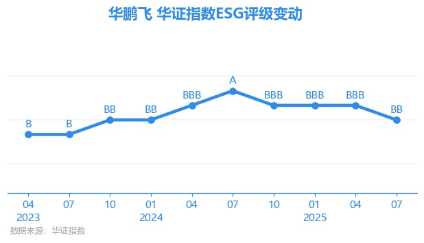 日前,华证指数公布了新一期(2025年7月31日)的ESG评级结果,华鹏飞(300350.SZ)获得BB评级(华证指数评级为C起至AAA九档,C为最低档,AAA为其最高一级评级/AA为其第二档),上一期(2025年4月30日)ESG评级为BBB。本期ESG评级在34家航空货运与物流行业A股上市公司中排名第18(上一期排名第16)。