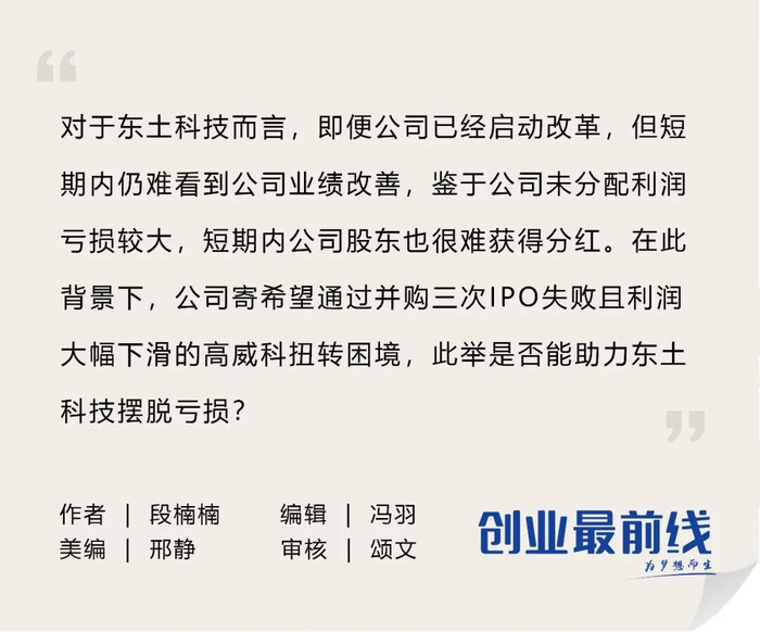 在此背景下,公司寄希望通过并购三次IPO失败且利润大幅下滑的高威科扭转困境,此举是否能助力东土科技摆脱亏损,「创业最前线」将持续保持关注。