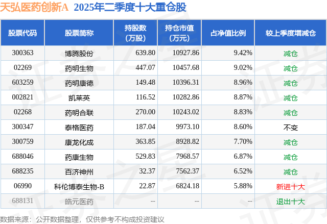 根据2025基金半年报公募基金重仓股数据,重仓该股的公募基金共12家,其中持有数量最多的公募基金为天弘基金的天弘医药创新A。天弘医药创新A目前规模为7.07亿元,最新净值1.2157(9月22日),较上一交易日上涨2.35%,近一年上涨91.51%。该公募基金现任基金经理为郭相博。郭相博在任的基金产品包括:天弘臻选健康混合A,管理时间为2022年3月17日至今,期间收益率为31.05%。