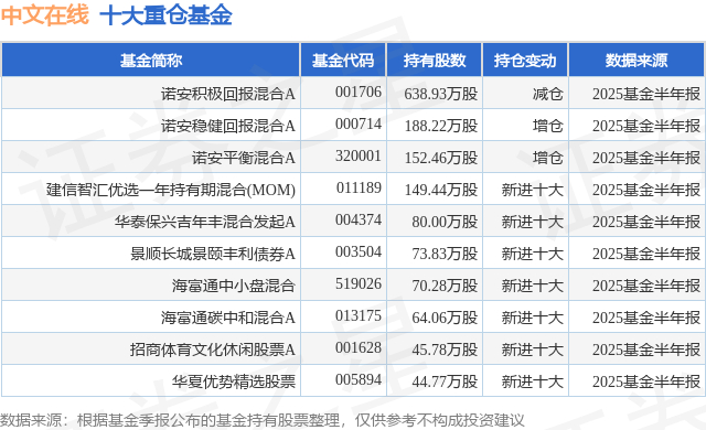 根据2025基金半年报公募基金重仓股数据,重仓该股的公募基金共27家,其中持有数量最多的公募基金为诺安基金的诺安积极回报混合A。诺安积极回报混合A目前规模为14.87亿元,最新净值2.307(10月9日),较上一交易日上涨1.18%,近一年上涨2.99%。该公募基金现任基金经理为刘慧影。刘慧影在任的基金产品包括:诺安优化配置混合A,管理时间为2022年8月3日至今,期间收益率为78.01%;诺安成长混合A,管理时间为2023年2月18日至今,期间收益率为46.26%;