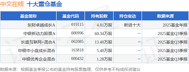 根据2025基金年报公募基金重仓股数据,重仓该股的公募基金共1家,其中持有数量最多的公募基金为东财基金的东财卓越成长A。东财卓越成长A目前规模为0.14亿元,最新净值1.7955(1月14日),较上一交易日上涨1.34%,近一年上涨80.71%。该公募基金现任基金经理为孙辰阳。孙辰阳在任的基金产品包括:东财远见成长A,管理时间为2023年4月11日至今,期间收益率为3.97%;