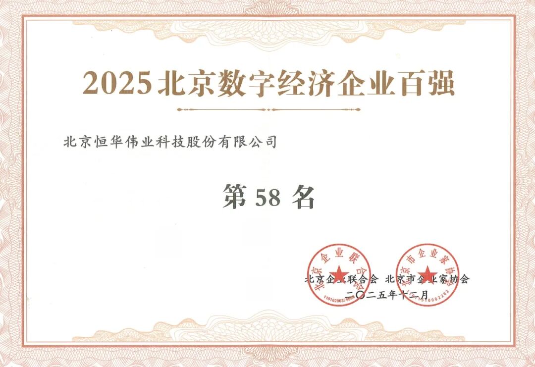 2025年12月26日,北京企业联合会、北京市企业家协会正式发布2025北京百强企业榜单。作为能源电力数字化领域的领军企业,恒华科技成功荣登2025北京数字经济企业百强、北京高精尖企业百强、北京服务业企业百强三大重量级榜单,彰显了公司在首都经济高质量发展浪潮中的核心竞争力与标杆价值。