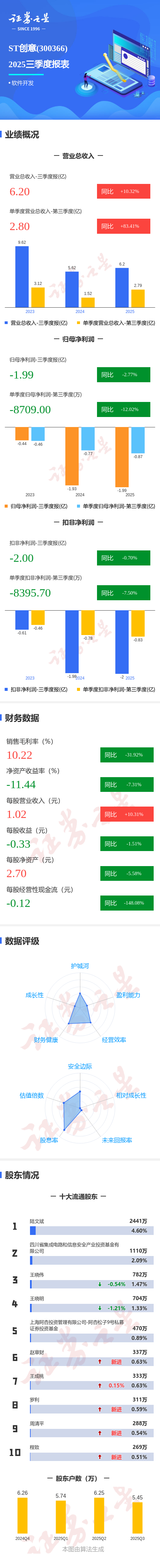 图解ST创意三季报:第三季度单季净利润同比下降12.02%