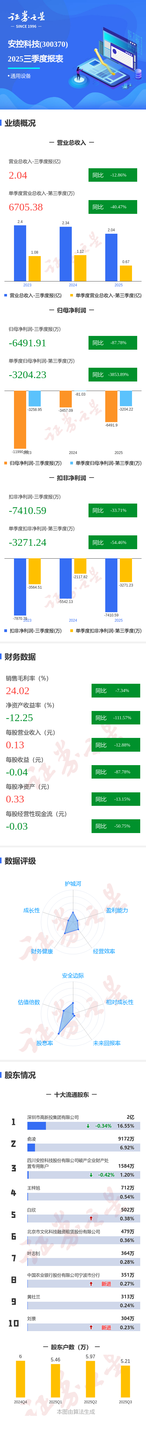图解安控科技三季报:第三季度单季净利润同比下降3853.89%