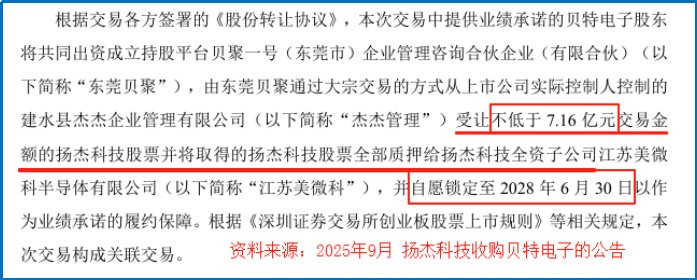 贝特电子需要拿出7.16亿元真金白银用于质押。若贝特电子未完成业绩,这些抵押将用于弥补扬杰科技损失。