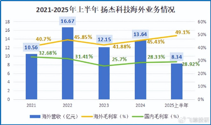 这直接带动了同时期扬杰科技的海外营收增长,同比增长34.95%,达到8.34亿元。