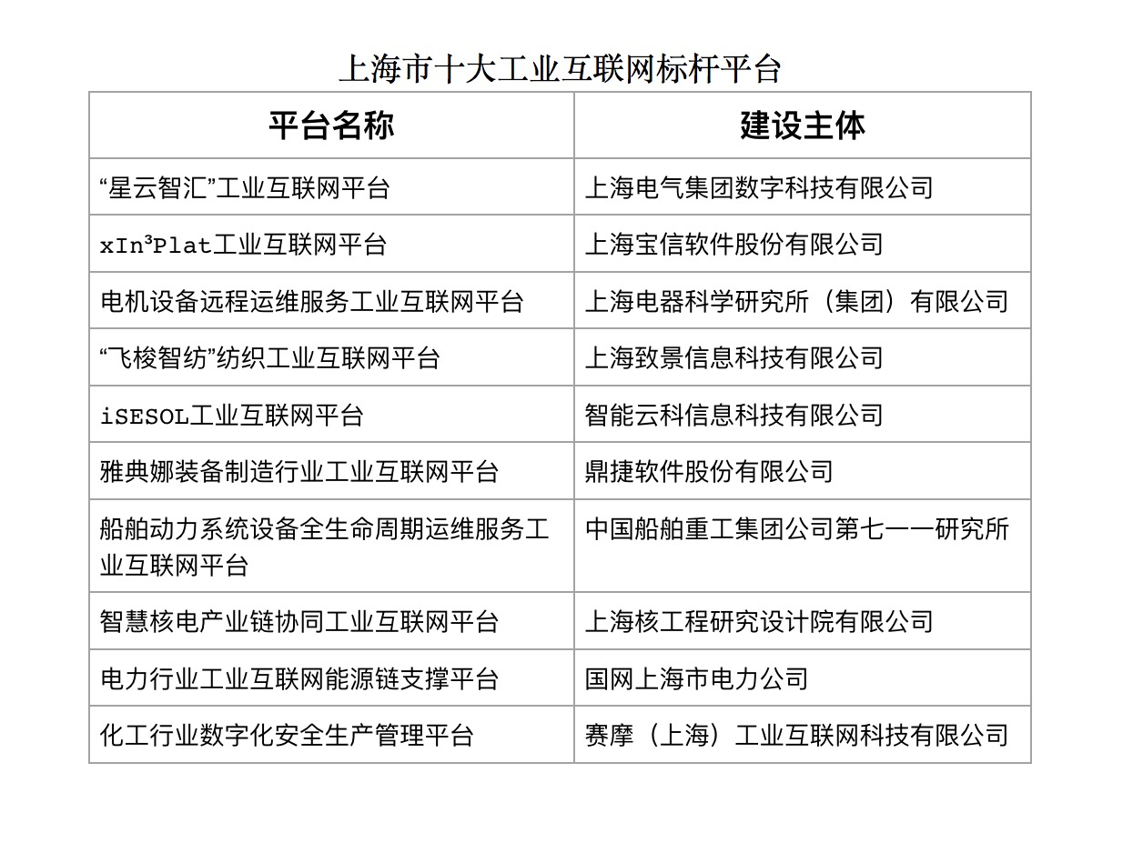 上证报中国证券网讯(记者 宋薇萍)9月6日上午,上海市制造业数字化转型现场交流会暨数字化诊断启动会在上海化工区召开。会上发布了上海市2022年度上海市十大工业互联网标杆平台。其中包括上海电气集团数字科技有限公司打造的“星云智汇”工业互联网平台、上海宝信软件股份有限公司打造的 xInPlat工业互联网平台,鼎捷软件股份有限公司打造的雅典娜装备制造行业工业互联网平台,国网上海市电力公司打造的电力行业工业互联网能源链支撑平台、赛摩(上海)工业互联网科技有限公司打造的化工行业数字化安全生产管理平台等。