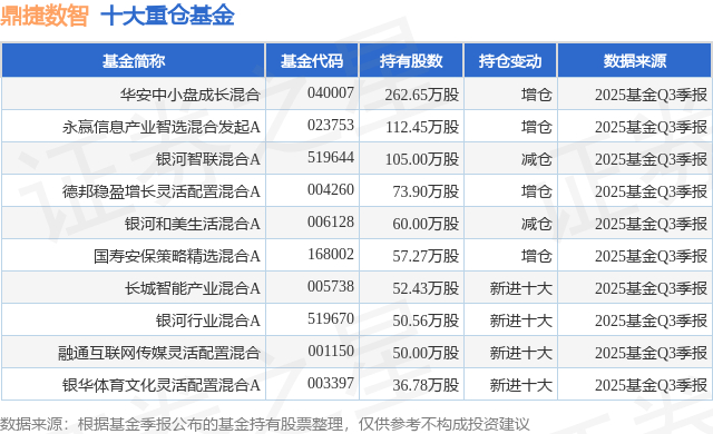 根据2025基金Q3季报公募基金重仓股数据,重仓该股的公募基金共29家,其中持有数量最多的公募基金为华安基金的华安中小盘成长混合。华安中小盘成长混合目前规模为20.0亿元,最新净值3.2652(1月7日),较上一交易日上涨0.58%,近一年上涨16.9%。该公募基金现任基金经理为金拓。金拓在任的基金产品包括:华安智增精选混合,管理时间为2023年10月23日至今,期间收益率为24.55%;华安景气回报混合发起式A,管理时间为2024年9月19日至今,期间收益率为26.74%;