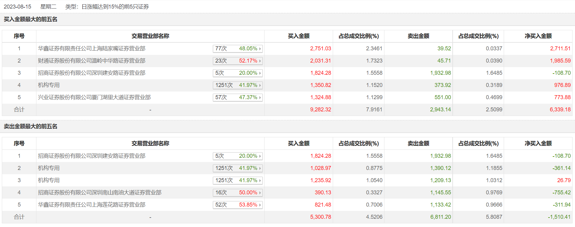 具体来看,机构买入3615.71万元,卖出2973.17万元,合计净买入642.54万元。此外,华鑫证券上海陆家嘴证券营业部、财通证券温岭中华路证券营业部分别买入2751.03万元、2031.31万元;招商证券深圳建安路证券营业部、招商证券深圳南山南油大道证券营业部分别卖出1932.98万元、1145.55万元。