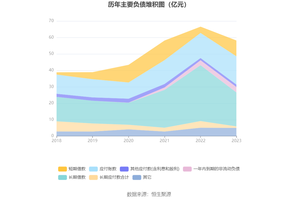 负债重大变化方面,截至2023年年末,公司长期借款较上年末减少39.42%,占公司总资产比重下降6.69个百分点,主要系偿还银行贷款;短期借款较上年末增加151.31%,占公司总资产比重上升3.13个百分点,主要系报告期取得银行借款;长期应付款合计较上年末减少76.88%,占公司总资产比重下降1.59个百分点;应付账款较上年末增加12.50%,占公司总资产比重上升1.19个百分点。
