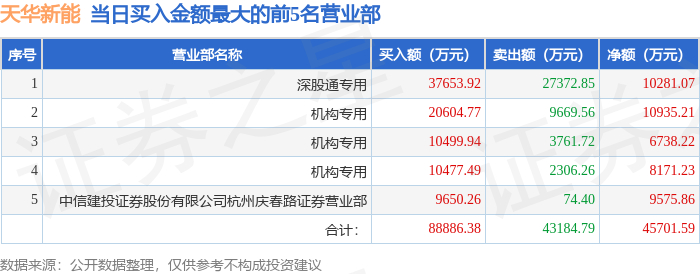 11月21日天华新能(300390)龙虎榜数据:机构净买入2.88亿元,北向资金净买入1.03亿元