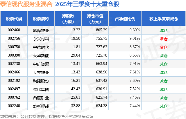 泰信现代服务业混合的前十大重仓股如下: