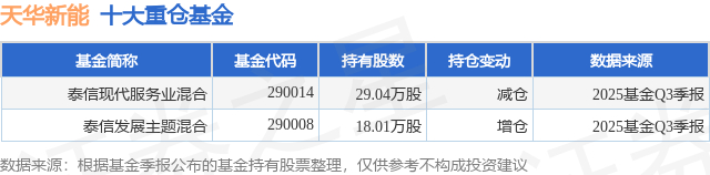 重仓天华新能的公募基金请见下表: