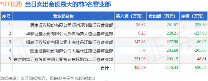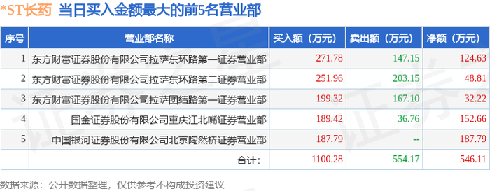 证券之星消息,沪深交易所2025年12月3日公布的交易公开信息显示,*ST长药(300391)因日涨幅达到15%的前5只证券登上龙虎榜。此次是近5个交易日内第1次上榜。
