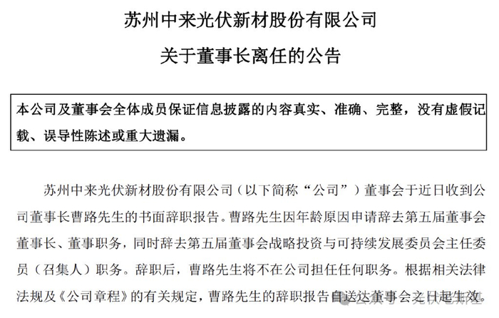 现年60岁的董事长曹路因年龄原因辞职,由张承宇接任。人事变动是否与中来股份业绩不振有关,公司并未明示,大家见仁见智。