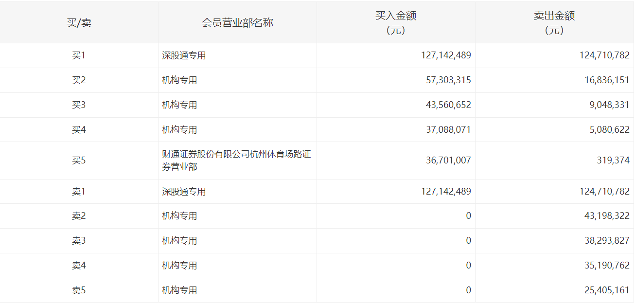 e公司讯,天孚通信今日20%涨停,成交额30.45亿元,换手率6.92%。盘后龙虎榜数据显示,深股通专用席位买入1.27亿元并卖出1.25亿元,三机构净买入1.07亿元,四机构净卖出1.42亿元。