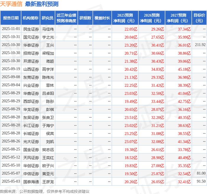 最新盈利预测明细如下: