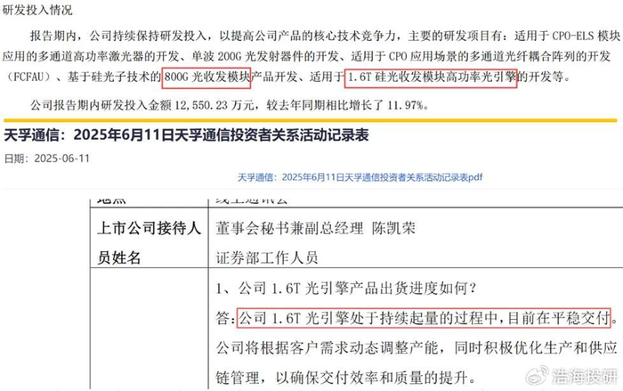 来源:天孚通信2025年半年报(上)、 天孚通信投关活动记录表(下)