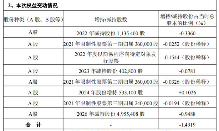 其中,邓家贵、吴学民在2026年(2026年2月5日至3月2日)减持股份4,955,408股,占当时总股本的比例0.9488%。