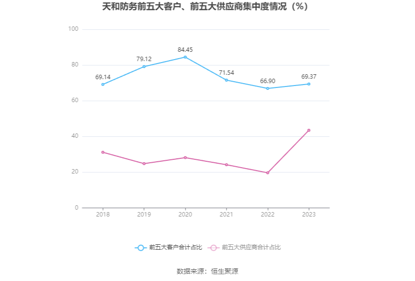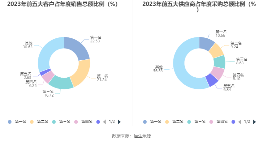 报告期内,公司前五大客户合计销售金额2.43亿元,占总销售金额比例为69.37%,公司前五名供应商合计采购金额0.83亿元,占年度采购总额比例为43.47%。