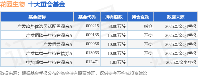 重仓花园生物的公募基金请见下表: