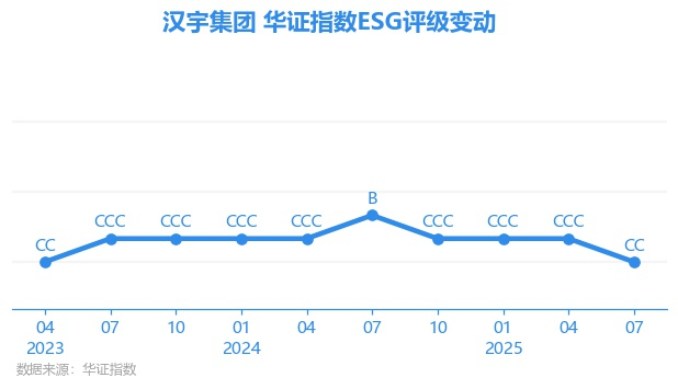 日前,华证指数公布了新一期(2025年7月31日)的ESG评级结果,汉宇集团(300403.SZ)获得CC评级(华证指数评级为C起至AAA九档,C为最低档,AAA为其最高一级评级/AA为其第二档),上一期(2025年4月30日)ESG评级为CCC。本期ESG评级在147家家庭耐用消费品行业A股上市公司中排名第115(上一期排名第115)。