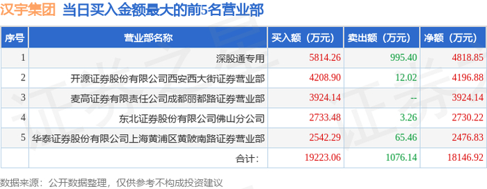 11月6日汉宇集团(300403)龙虎榜数据:北向资金净买入4818.85万元