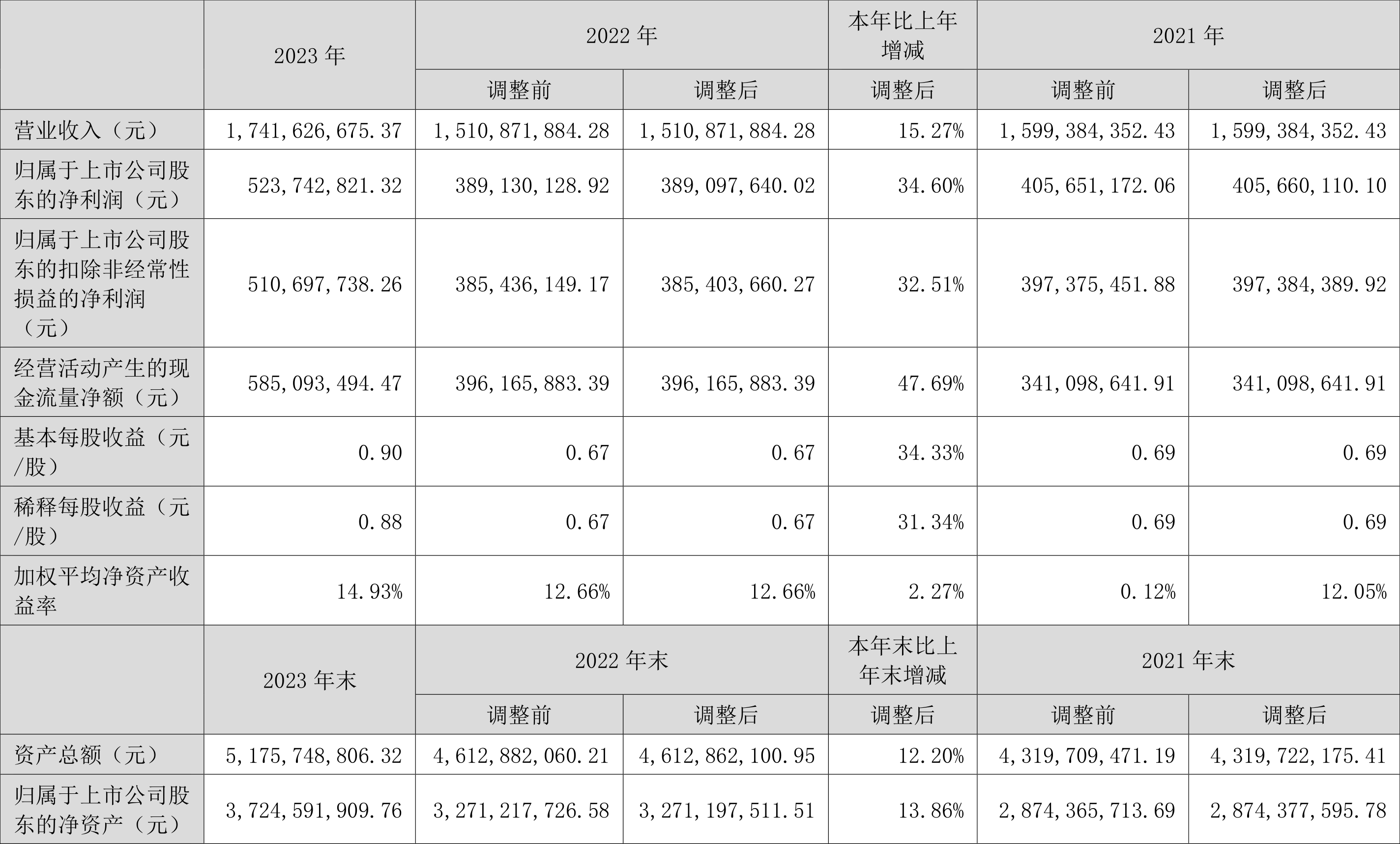 数据显示,2023年公司加权平均净资产收益率为14.93%,较上年同期增长2.27个百分点;公司2023年投入资本回报率为12.11%,较上年同期增长1.68个百分点。
