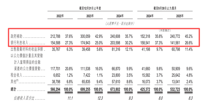 政府补助及银行利息占比三环集团各期净利润的24.39%、30%、20.28%及19.53%。