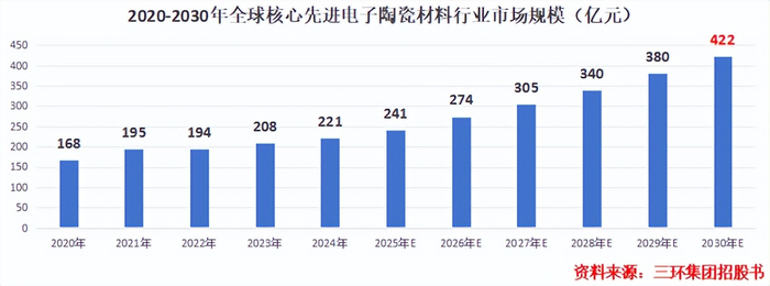 2024年,全球核心先进电子陶瓷材料的市场规模约为221亿元,预计将在2030年达到422亿元,足足提高了一倍。而三环集团目前已具备先发优势,未来有望继续吃下市场蛋糕。
