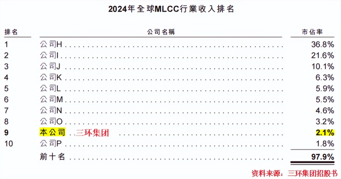 2024年,公司挤进全球MLCC市场前十名,位居第九;在国内市场位居第一。