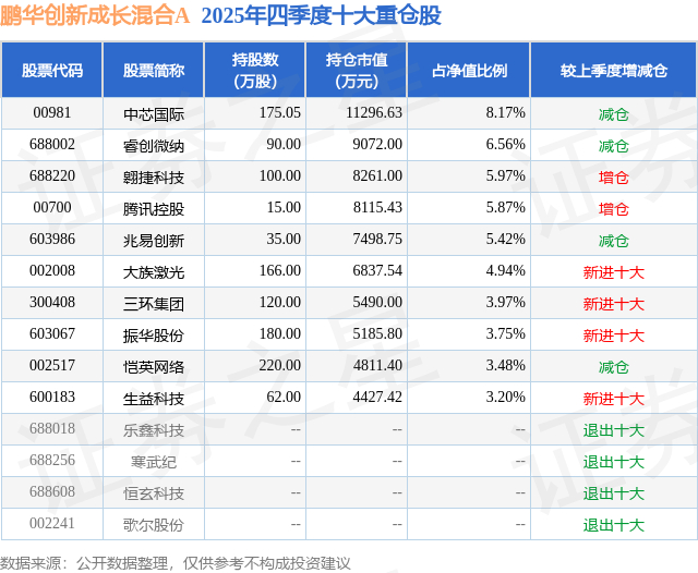 根据2025基金年报公募基金重仓股数据,重仓该股的公募基金共13家,其中持有数量最多的公募基金为鹏华基金的鹏华创新成长混合A。鹏华创新成长混合A目前规模为12.46亿元,最新净值0.7355(1月20日),较上一交易日下跌1.74%,近一年上涨31.41%。该公募基金现任基金经理为赵花荣。赵花荣在任的基金产品包括:鹏华增华混合A,管理时间为2024年12月19日至今,期间收益率为28.47%。