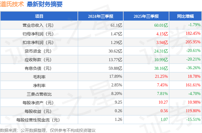 道氏技术(300409)2025年三季报简析:净利润同比增长182.45%,盈利能力上升