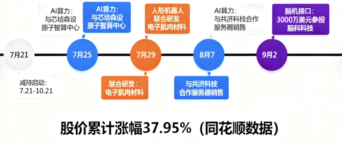 来源:Wind在这一系列动态催化下,同花顺数据显示,道氏技术股价自今年6月底不断走高,累计涨幅37.95%。作为建筑陶瓷领域“第一股”,公司已形成覆盖固态电池、人形机器人、AI芯片、AI算力、脑机接口的多元概念矩阵,这种广度在行业内颇具代表性。