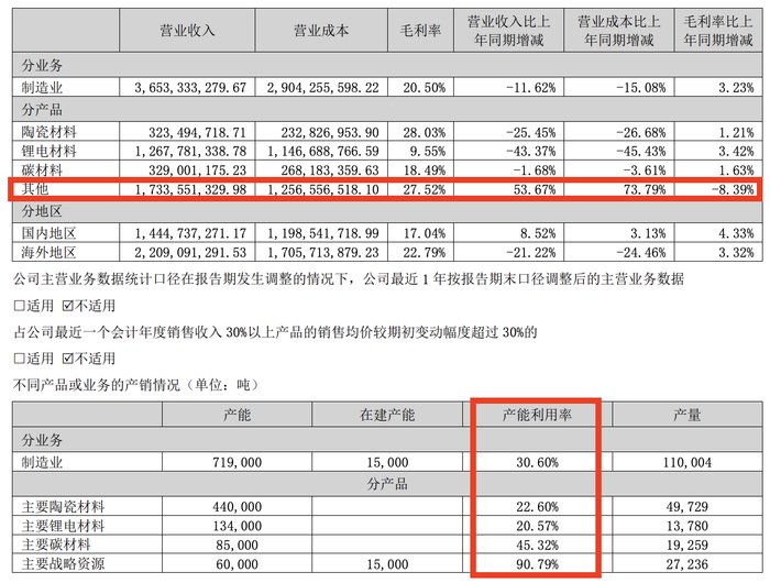 此外,公司动用大量资金建设的项目,眼下却面临“高投入、低运转”的尴尬。2025年上半年,道氏技术锂电材料、碳材料的产能利用率进一步下滑,分别降至20.57%、45.32%。