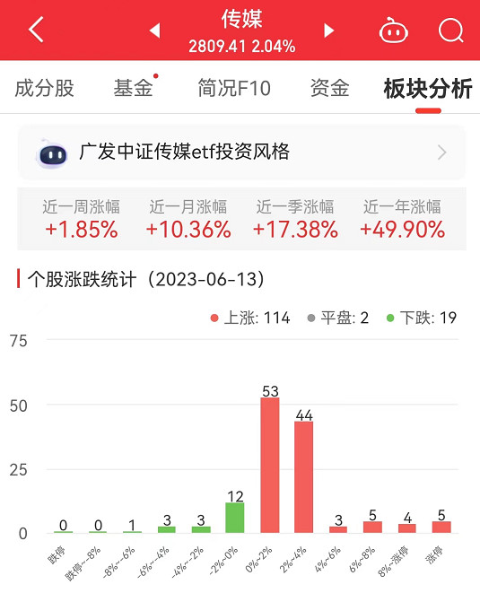 其中,芒果超媒、电广传媒、慈文传媒、天娱数科、掌阅科技位列板块涨幅前五位,涨幅分别为10.96%、10.05%、10.05%、10.00%、10.00%。