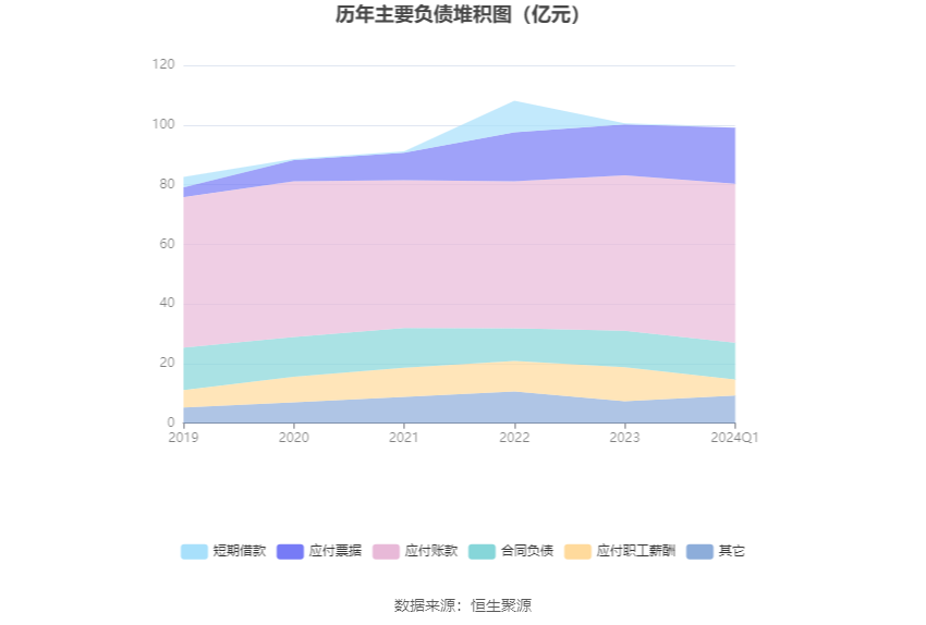 负债重大变化方面,截至2024年一季度末,公司应付职工薪酬较上年末减少52.39%,占公司总资产比重下降1.91个百分点;应付票据较上年末增加9.99%,占公司总资产比重上升0.48个百分点;应交税费较上年末增加60.99%,占公司总资产比重上升0.51个百分点;应付账款较上年末增加2.28%,占公司总资产比重上升0.19个百分点。